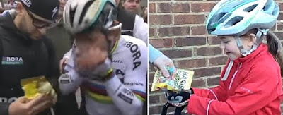 Ruby imitou o gesto de Sagan e o ciclista reagiu ao vídeo da criança britânica