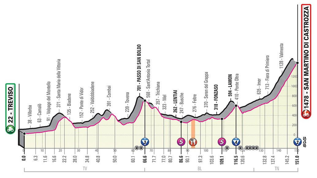 19ª etapa (31 de Maio): Treviso - San Martino di Castrozza, 151 quilómetros