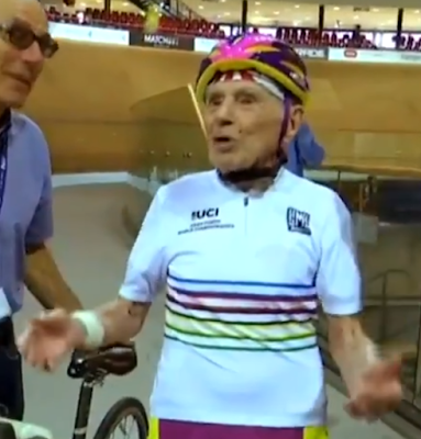Marchand precisou de ajuda para começar a pedalar, mas mal entrou no seu ritmo, esteve uma hora no velódromo, seguido de perto por outro ciclista. Este francês tornou-se num exemplo de vida, com os seus recordes da hora a serem notícia um pouco por todo o mundo. 22.547 quilómetros é a marca que estabeleceu em Janeiro de 2017, na categoria de mais de 105 anos. Na de mais de 100 anos, o recorde da hora de Marchand é de 26.925 quilómetros, alcançado em 2014.